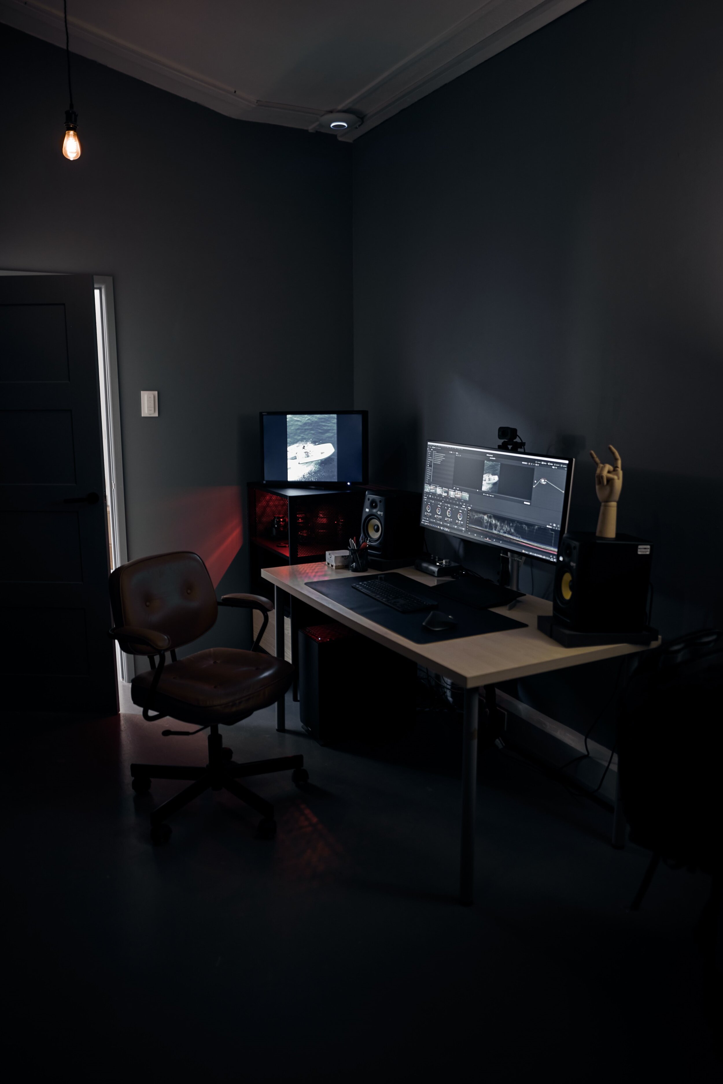 Studio Progress update. The edit booth is, although still unfinished, starting to take shape. This 4.3m x 2.3m space has been designed to be separate from the studio, self contained, quiet and controlled space to edit video and for photographic retouch. It features neutral mid grey walls, fully controllable lighting including blackout, acoustically insulated walls, 100% sRGB 98% DCI P3 accurate colour calibrated screens and reference audio monitors. It was constructed with approx. 60% reused materials from previous photoshoot set builds to reduce waste. Further improvements in the near future will include a larger 65" wall mounted screen, improved acoustic treatment to the walls, new desks, a vocal booth and more seating. Being my main editing space it's in use a lot, but if your looking for space to edit or even review work in a accurate, controlled environment, please do get in touch for availability.